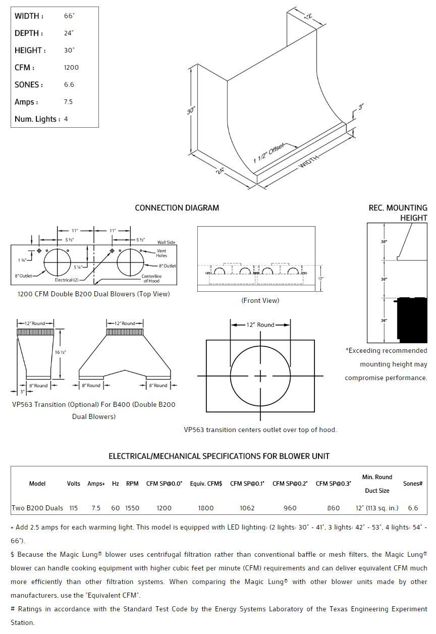 66" Vent-A-Hood Premier Magic Lung Professional/Standard Wall Mounted DAH30466SS