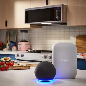 Stay in control of the kitchen with hands-free voice commands for multi-color LED lights and fan using Amazon Alexa or Google Home devices. Plus get updates on cooking times and notifications when food is done *WiFi & App Required. Features subject to change. Details & privacy info at kitchenaid.com/connect (USA) or kitchenaid.ca/connect (Canada). Appliance must be set to Remote Enable. Google® is a trademark of Google LLC. Alexa is a trademark of Amazon.com, Inc. or its affiliates.