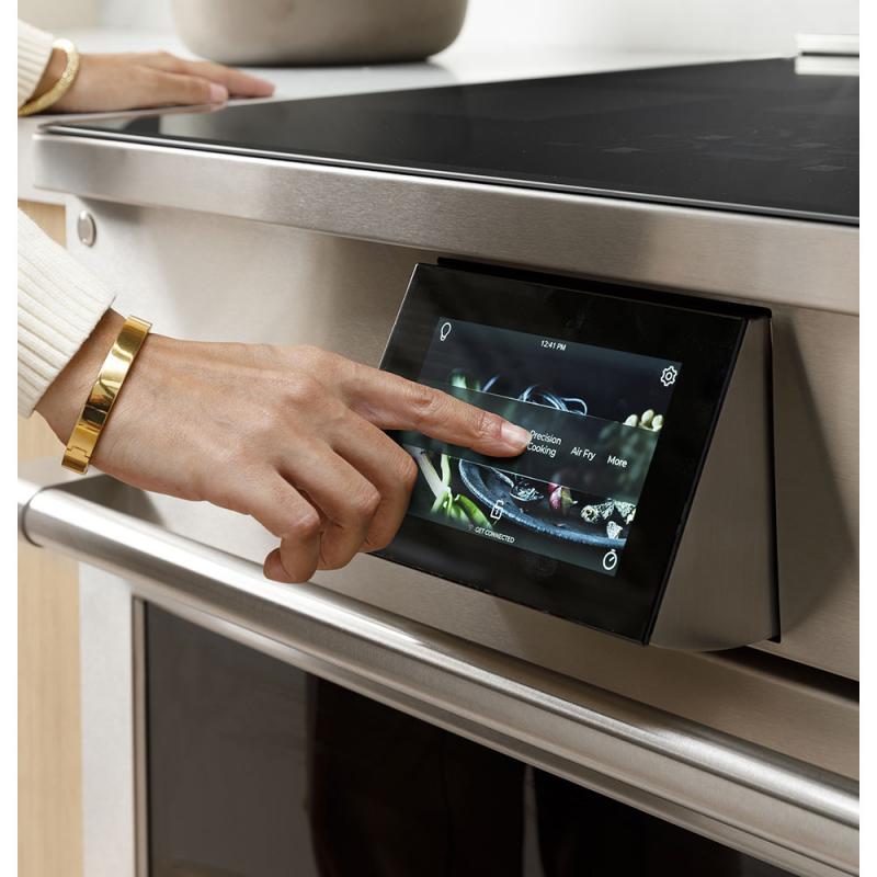 With a delicate touch, the articulating LCD screen swings out toward the user for an ergonomic experience before returning flush with the oven control panel when it is not in use.