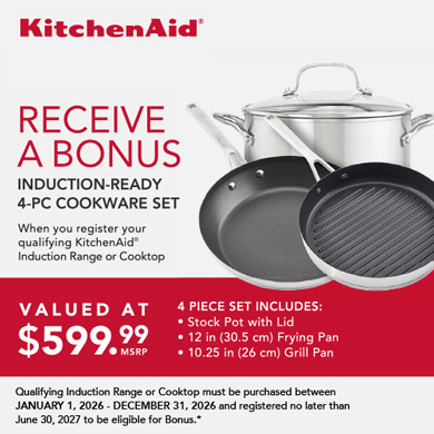 When you register your qualifying Kitchenaid® Induction Cooktop and Range.
